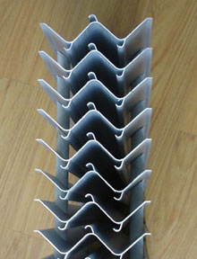 擋水板是中央空調(diào)末端裝置的一個(gè)重要部件,它與中央空調(diào)相配套,作汽水分離功能?晒┫盗衅贩N有以玻璃鋼、不銹鋼、鋁合金、鍍鋅板為材質(zhì)的波紋多棱擋水板和導(dǎo)流板。本產(chǎn)品適用紡織、化纖、冶金、機(jī)械、醫(yī)藥、電子、環(huán)保除塵、商場(chǎng)、賓館的中央空調(diào)器。 | |